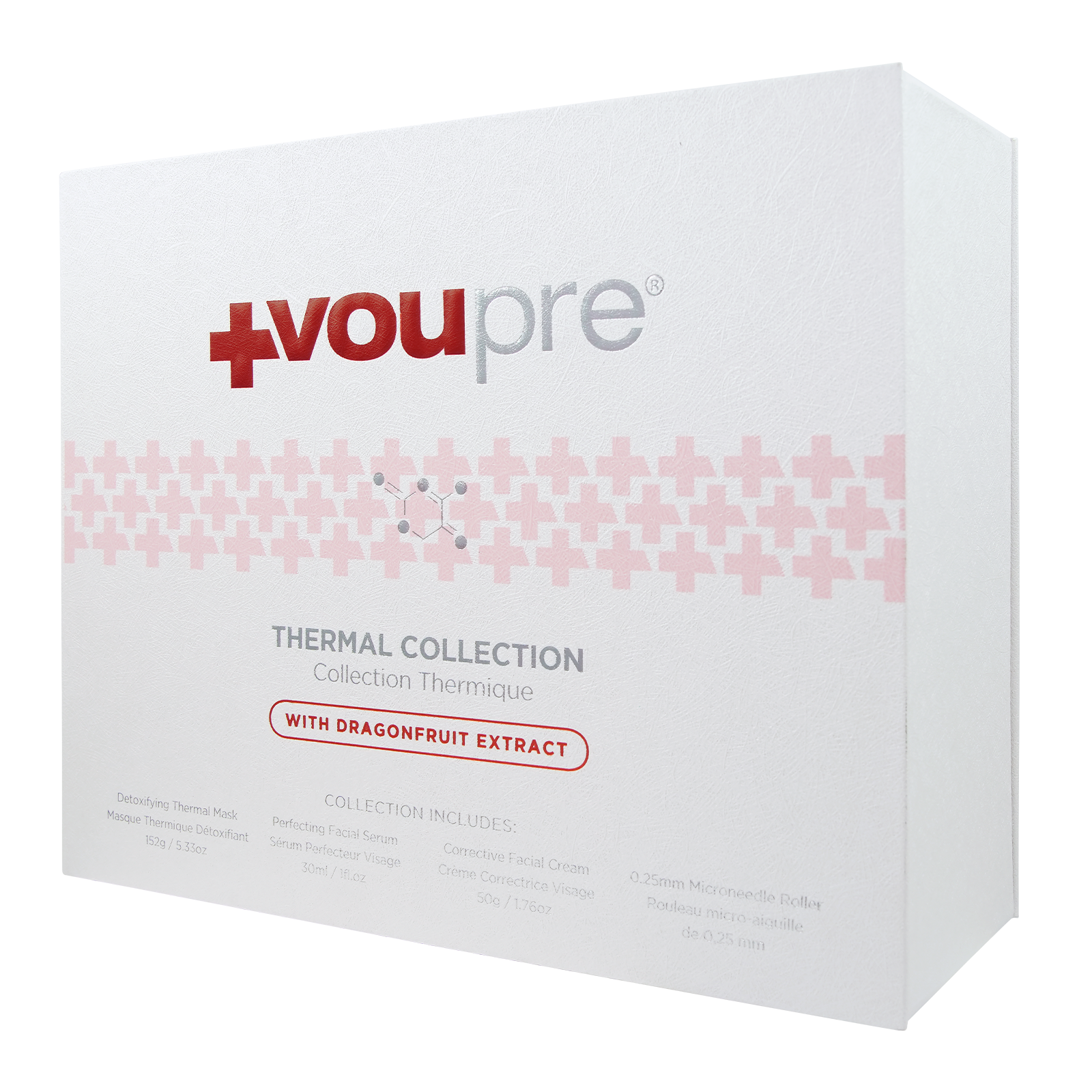 The Thermal Collection 3-step set is an excellent combination to enhance your skin's freshness and vitality. With the relaxing Detoxifying Thermal Mask, the hydrating Perfecting Facial Serum, and the renewing Corrective Facial Cream, this set will invigorate and leave you feeling refreshed and brightened. This unique set includes a 0.25mm microneedle that works as an all-over skin corrector. This addition to the Thermal Collection Set aims to fast track the delivery of skincare products and jumpstart your journey to feeling clear and smooth.